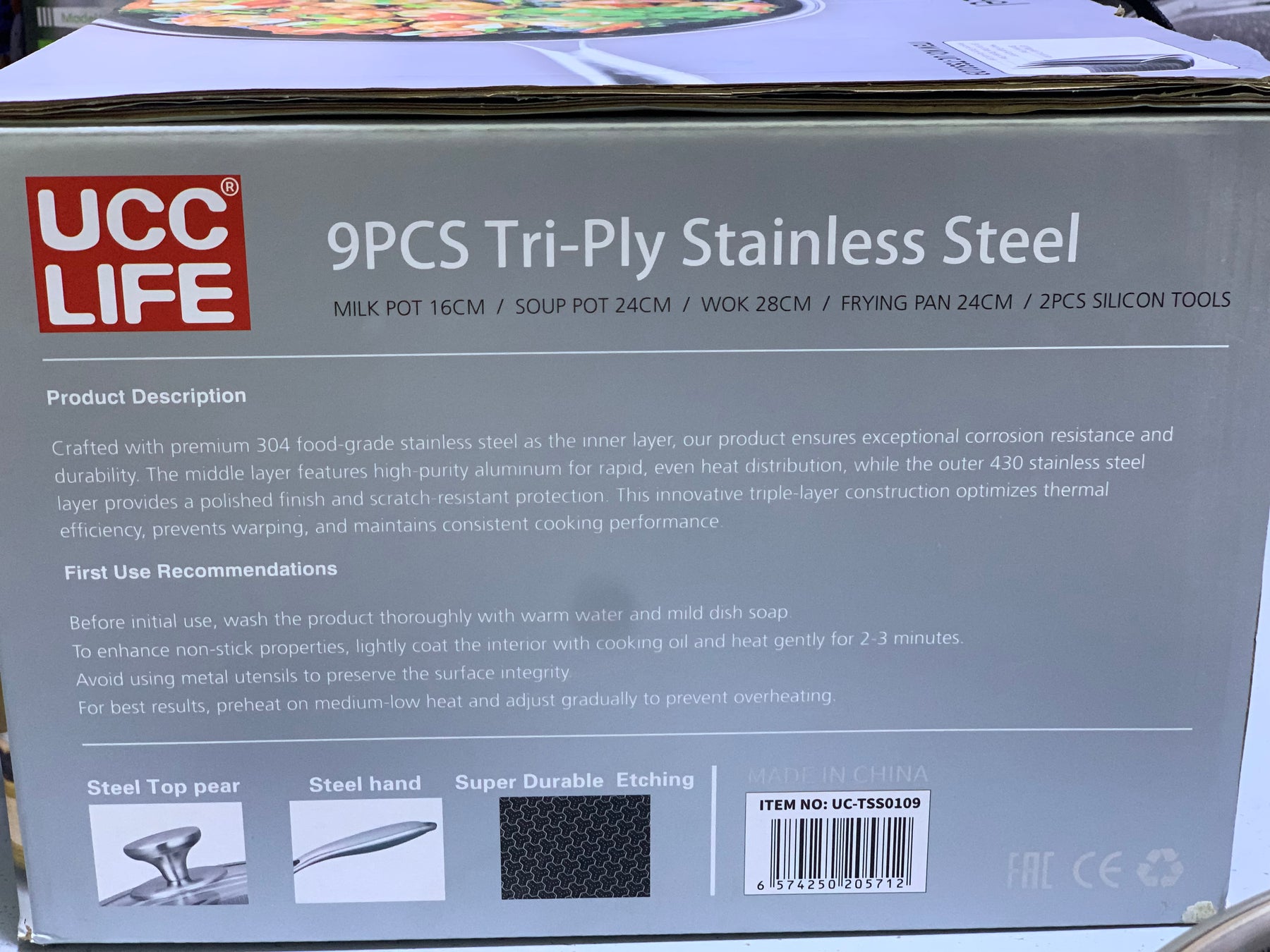 9 Pieces Tri-Play Cookware Set Stainless Steel