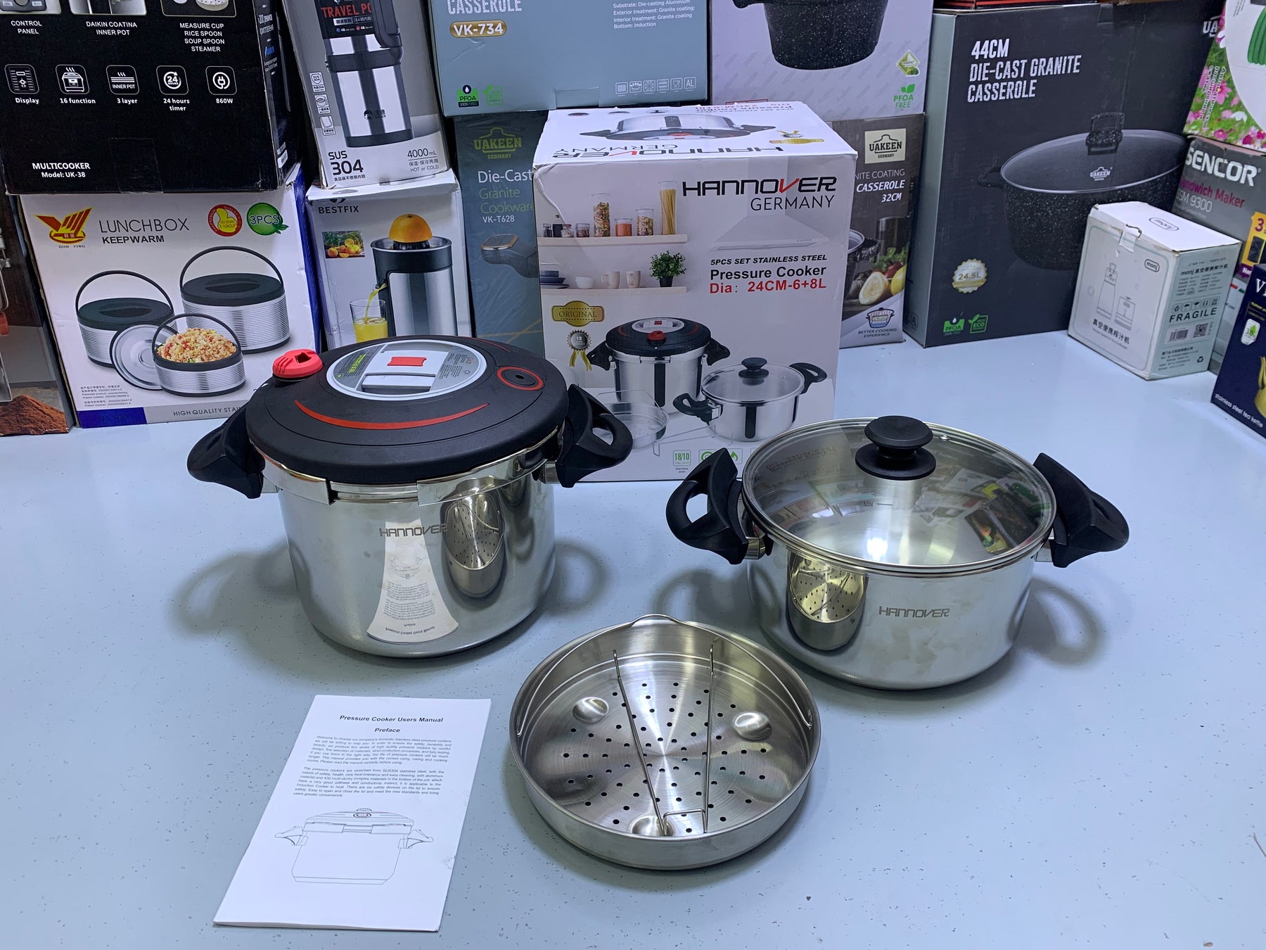 Hannover 3 in 1 18/10 Stainless Steel Pressure Cooker 6L and 8L