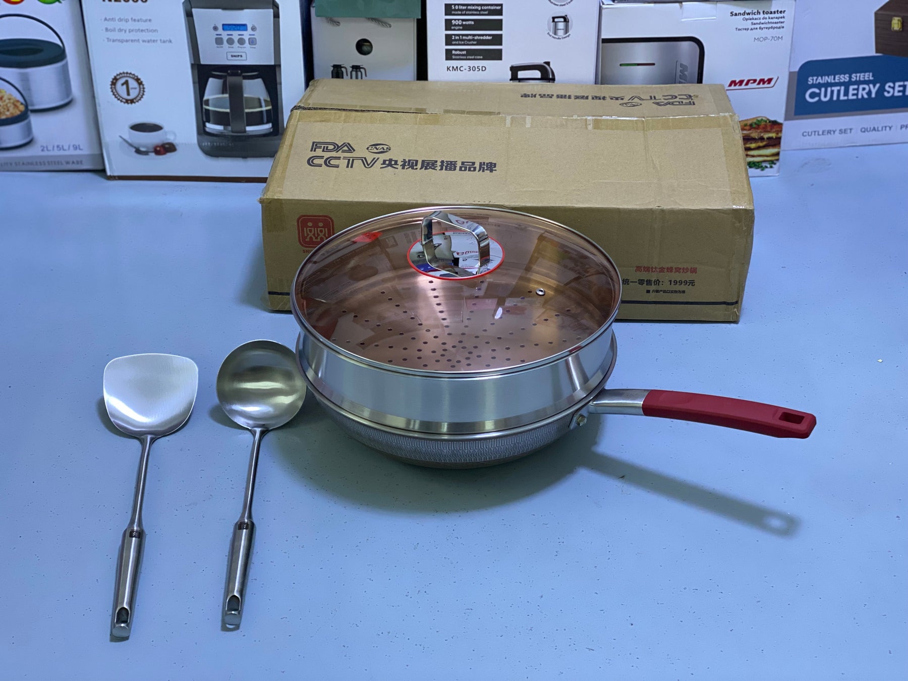 Titanium Material 2 in 1 Frying Pan and Steamer 32cm